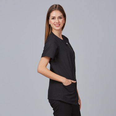 La facilidad de lavado y secado rápido de la blusa cruzada ALHELI te permite mantener tu uniforme en perfectas condiciones sin esfuerzo.