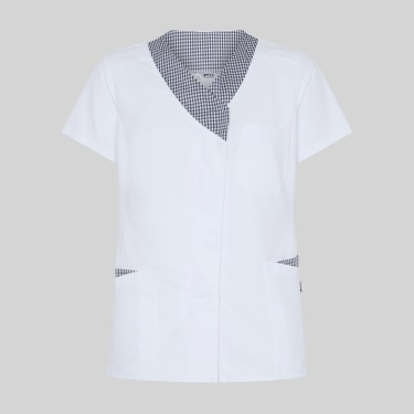 11,20 €Casaca servicios unisex de manga corta. Cuello V. Bolsillo en el pecho en el lado izquierdo. Dos bolsillos en la parte inferior. Media luna en el cuello.Aberturas laterales.