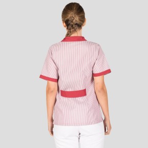 28,08 €Bata corta de mujer, abierta, con botones y en manga corta. Modelo semi ajustado, con pinzas en delantero y espalda, cinturón trasero y cuello con solapa. Cuenta con un bolsillo en el pecho izquierdo y dos bolsillos laterales. Confeccionada en vichy de rayas, lleva combinadas en color liso las vueltas de bolsillos, mangas y cuello. Además, tiene aberturas en los costados. Prenda muy cómoda para uniformes de limpieza en general. -