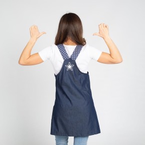 29,07 €Pichi para mujer con original detalle bordado en la espalda y cierre mediante cremallera lateral invisible. Cuenta con un bolsillo en el lateral derecho, pinzas en el pecho y la espalda y ollaos delanteros para regular los tirantes. Confeccionado en TEJANO ELÁSTICO de 98% Algodón - 2% Elastano, combinado con tejido estampado de estrellas en tirantes y bolsillo. Ideal como uniforme colegial para educadoras / maestras en escuelas infantiles y guarderías. -