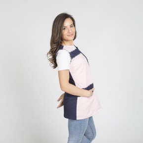29,70 €Bata para mujer sin mangas, con cierre mediante cremallera desplazada hacia el lateral. Cuenta con un bolsillo en el lateral derecho y pinzas en el pecho y la espalda. Confeccionada en SARGA de color rosa y marino, con original bies estampado. Ideal como uniforme colegial para maestras / educadoras en escuelas infantiles y guarderías. -