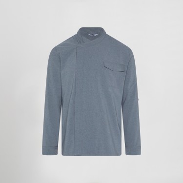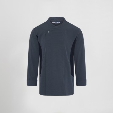 Incorpora sistema AIR DRY en la espalda, que mejora la ventilación natural del cuerpo, ideal para entornos calurosos como cocinas profesionales. Los botones de presión ocultos y los puños vueltos con presillas refuerzan su estilo limpio y funcional, mientras que el bolsillo en la manga izquierda aporta practicidad sin perder elegancia.