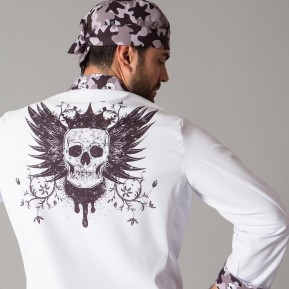 52,02 €Chaqueta unisex en manga larga, con cierre cruzado mediante botones de presión ocultos, cuello mao, puños vueltos y un bolsillo en la manga izquierda. Prenda semi ajustada, confeccionada en SARGA de 100% Algodón, estampada con original diseño de calaveras y tejido técnico AEROSILVER en toda la espalda. Ideal para uniformes de cocineros y chefs en hostelería, restauración y cocina en general.