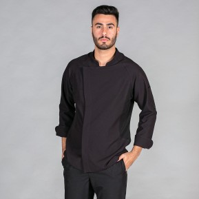 42,75 €Chaqueta unisex en manga larga, con cuello mao, puños vueltos, un bolsillo en la manga izquierda y cierre central mediante botones de presión ocultos. Prenda semi ajustada, con costadillos en espalda. Confeccionada en MICROFIBRA color negro de 100% Poliéster, un tejido anti bacterias, altamente transpirable, tolerante a salpicaduras de lejía, lavable a 90º, seca rápido, sin necesidad de planchado y repelente al cabello y pelo de mascotas. Además, cuenta con tejido técnico AEROSILVER en la espalda y original estampado en cuello y mangas. Ideal como uniforme para cocineros y chefs en hostelería, restauración y cocina en general.