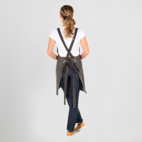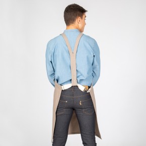 23,00 €Delantal de peto con cinco bolsillos delanteros. Cuenta con un original cierre mediante hebilla entrelazada en el tirante del cuello y tiras laterales para anudar. Ideal para uniforme de bares, restaurantes, cafeterías, chefs o comercios. -