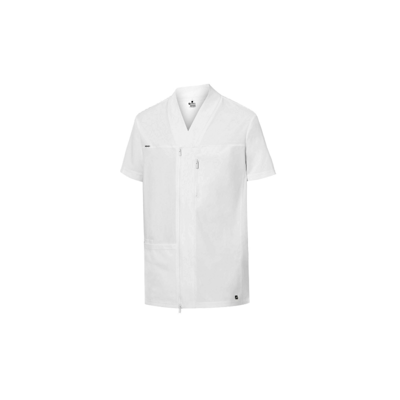 Elementos de diseño, como el cierre con cremallera inyectada bidireccional o los pespuntes de adorno, se unen con elementos de funcionalidad y comodidad, como los bolsillos multifunción o un tejido elástico, suave y ligero. Sin duda esta chaqueta reinventa una prenda esencial del uniforme sanitario.