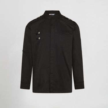 Este modelo presenta un corte semi ajustado (H2) que favorece la silueta masculina sin comprometer la movilidad. Su cuello mao y las charreteras en los hombros aportan un estilo distintivo y sofisticado, mientras que los costados con tecnología AIR DRY garantizan ventilación continua, manteniéndote fresco incluso en cocinas de alta temperatura.