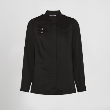 Su diseño incluye detalles profesionales como el cuello mao, charreteras en los hombros y manga roll up, permitiendo adaptar la prenda al ritmo del trabajo. El cierre con botones de presión ocultos aporta una estética limpia y moderna, mientras que los bolsillos funcionales en el pecho y la manga ofrecen practicidad sin sacrificar el diseño.
