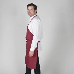 8,19 €Delantal con peto sin bolsillos ni hebilla reguladora en el cuello y con cintas para anudar de algodón. Modelo recomendado para uniformes de cocina y restauración, camarero, catering y comercio en general. -