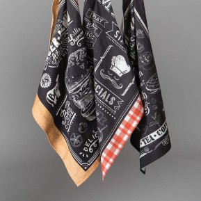 PACK de tres paños de de cocina con estampado ""vegetales"" o ""menú"". Prendas confeccionadas en 100% Algodón con unas medidas de 63cm x 49cm.