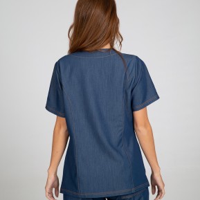 46,53 €Casaca para mujer en manga corta, con dos bolsillos delanteros y cuello pico con dos botones decorativos. Prenda semi ajustada, con costadillos delanteros y traseros y aberturas laterales. Confeccionada en TEJANO SIN LAVAR de 78% Poliéster - 18% Viscosa - 4% Elastano. Ideal como uniforme para enfermería, doctores y demás profesionales sanitarios en hospitales, clínicas y centros médicos, laboratorio, farmacia, veterinario o comercio. -