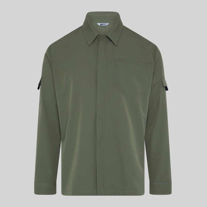 El cierre con botones de presión ocultos proporciona un acabado limpio y profesional, mientras que el cuello camisero aporta un toque clásico y elegante. Además, cuenta con costuras en el codo, mejorando la flexibilidad y durabilidad de la prenda.